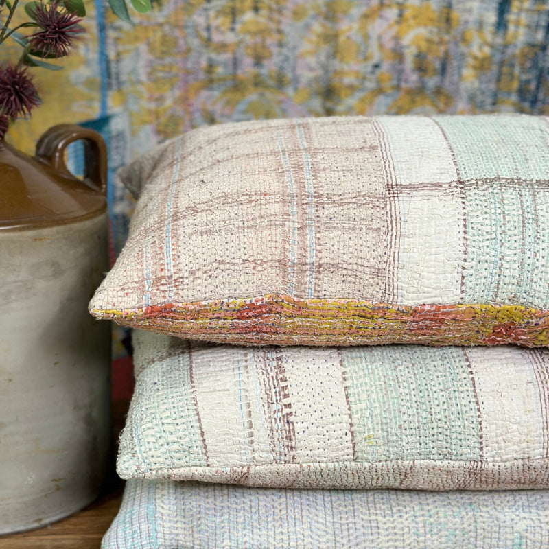 Hos Quote Copenhagen finder du et bredt udvalg af unikke produkter fremstillet af Indisk vintage sari til dit hjem – både indendørs og udendørs.