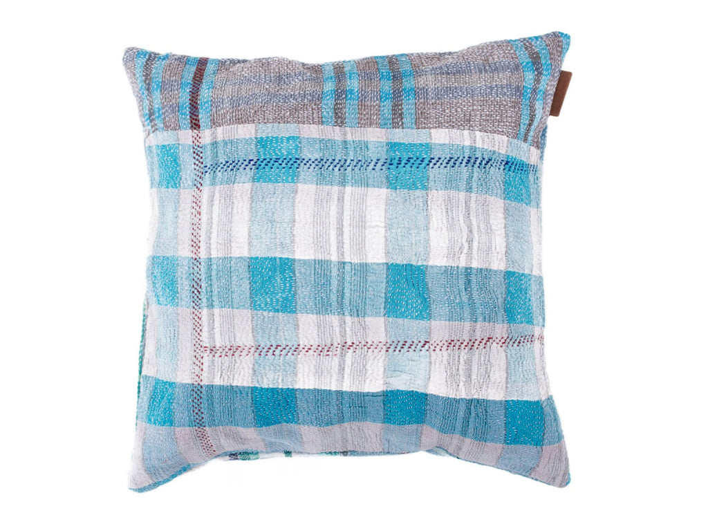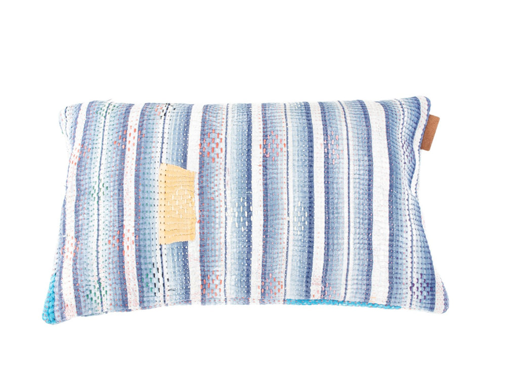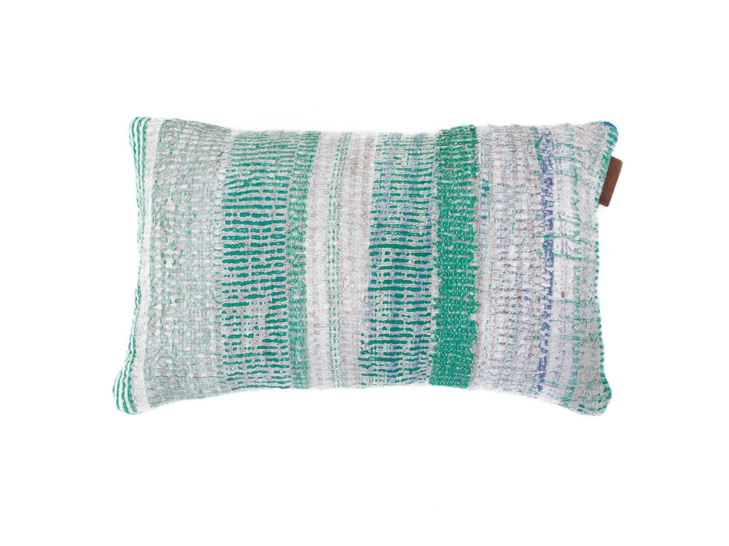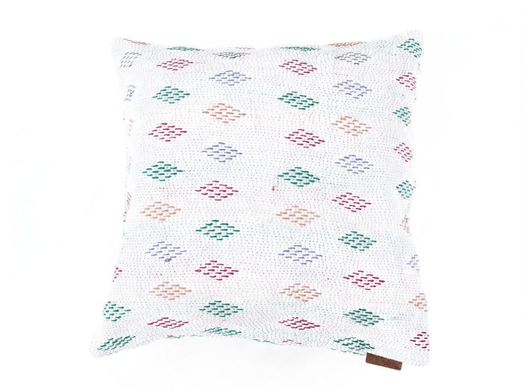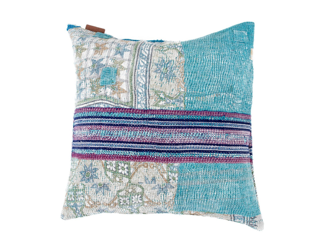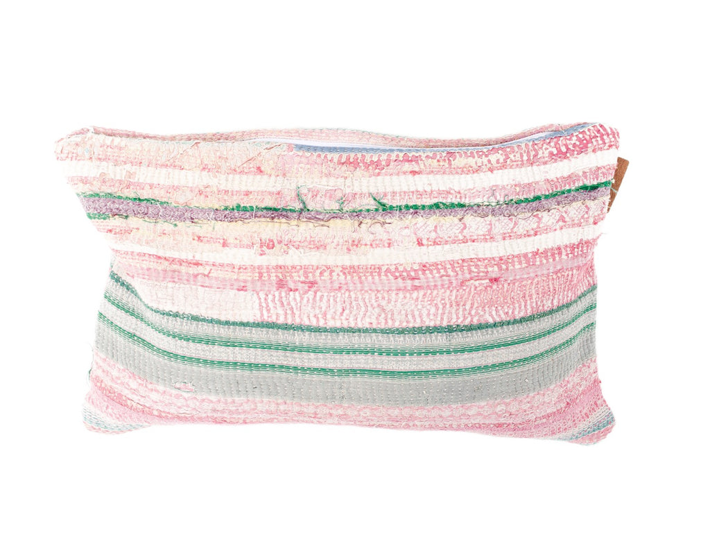 Fine Q sind Sari-Kissen, die aus einer Sari-Art hergestellt werden, die einen anderen Ausdruck hat als unsere normalen Sari-Kantha-Kissen. Sie bestehen aus dickem Sari aus recycelter Baumwolle, der mit mehreren Schichten dazwischen zusammengelegt ist und einen abgenutzten Look aufweist, wobei die Saris im Inneren dazu beitragen, dem gesamten Kissen einen sehr rohen Vintage-Look zu verleihen. Sie sind in Farben und Mustern gedämpft und mit kleineren und engeren Kantha-Stichen genäht, was ihnen ein authentisches Aussehen verleiht.
