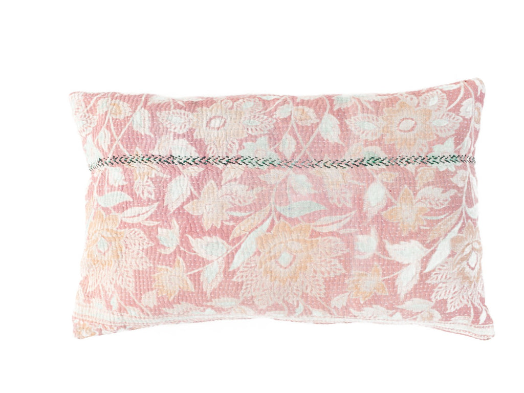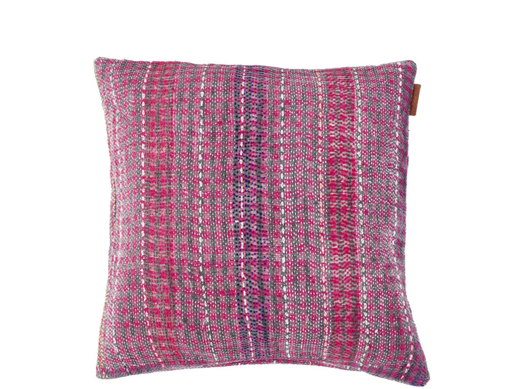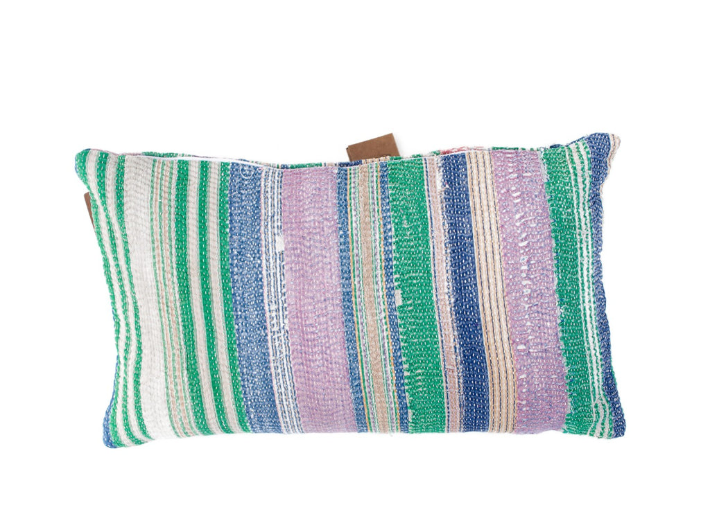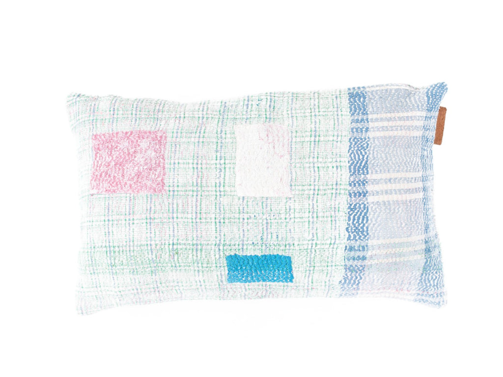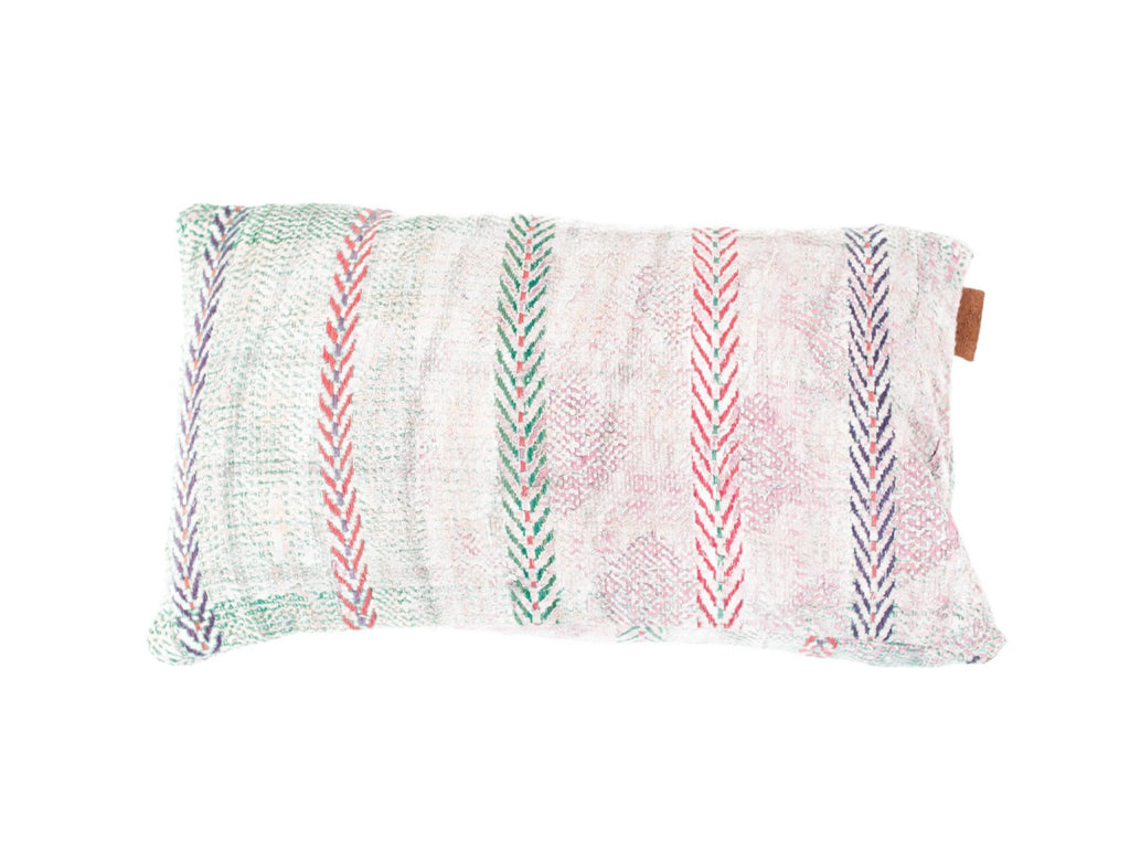 Fine Q sind Sari-Kissen, die aus einer Sari-Art hergestellt werden, die einen anderen Ausdruck hat als unsere normalen Sari-Kantha-Kissen. Sie bestehen aus dickem Sari aus recycelter Baumwolle, der mit mehreren Schichten dazwischen zusammengelegt ist und einen abgenutzten Look aufweist, wobei die Saris im Inneren dazu beitragen, dem gesamten Kissen einen sehr rohen Vintage-Look zu verleihen. Sie sind in Farben und Mustern gedämpft und mit kleineren und engeren Kantha-Stichen genäht, was ihnen ein authentisches Aussehen verleiht.